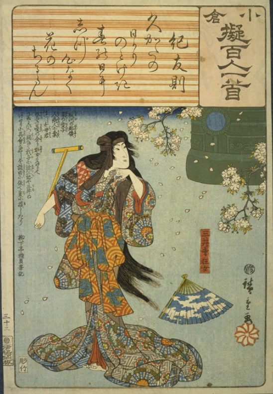 Hiroshige “Ogura Hyakunin Isshu Ki Tomonori”, Ibasen. National Diet Library Digital Collection https://dl.ndl.go.jp/pid/1313058